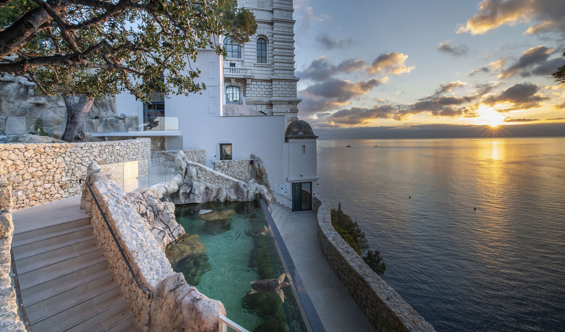 Comment créer une extension d’un Musée aussi emblématique que le Musée Océanographique de Monaco dans le paysage, sans le dénaturer ? Telle fut la question posée à laquelle nous avons pu répondre et que nous avons pu concrétiser. Ce projet d’espace « des Tortues Marines » s'insère parfaitement dans l'espace disponible, alignant sa géométrie sur les volumes existants. Il permet de mettre en valeur l'entrée des Jardins Saint Martin, sans pour autant faire écran à sa vue mer.