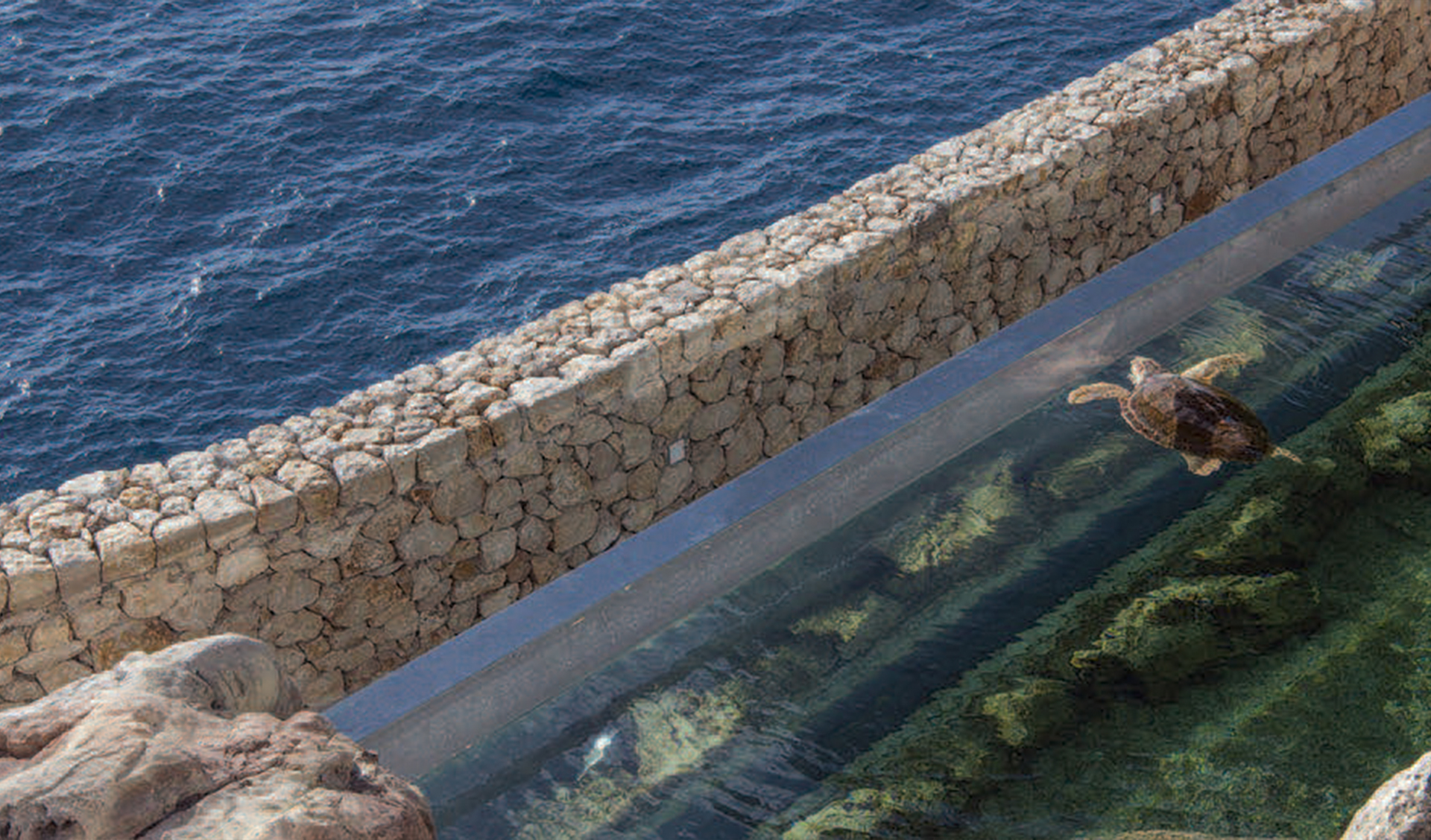 Les visiteurs peuvent découvrir le bassin de présentation des tortues marines grâce à un cheminement pittoresque aménagé tout autour du plan d'eau. Chaque séquence, composée de différents escaliers et paliers, offre de nouveaux points de vue au visiteur en lui permettant d'admirer à la fois le paysage et les animaux du bassin.